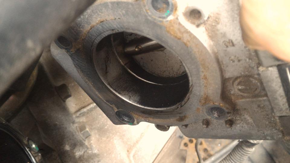 Отвернув болты получите доступ к дросселю с обеих сторон. Напомню я не смог снять прикипевшие шланги.