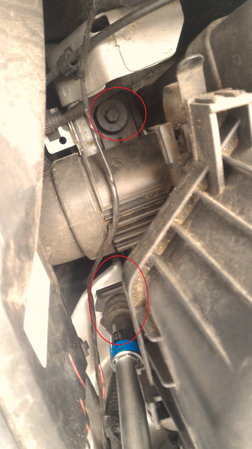- Отвёрткой ослабьте болты на двух хомутах стягивающих воздуховод. Одной стороной патрубок крепится к корпусу фильтра, другой – к дроссельной заслонке.