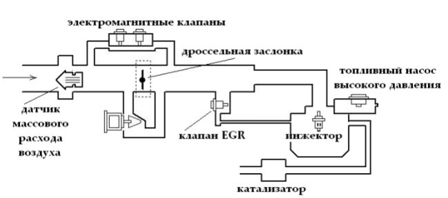 Классическая система непосредственного впрыска топлива конструктивно состоит из следующих элементов: