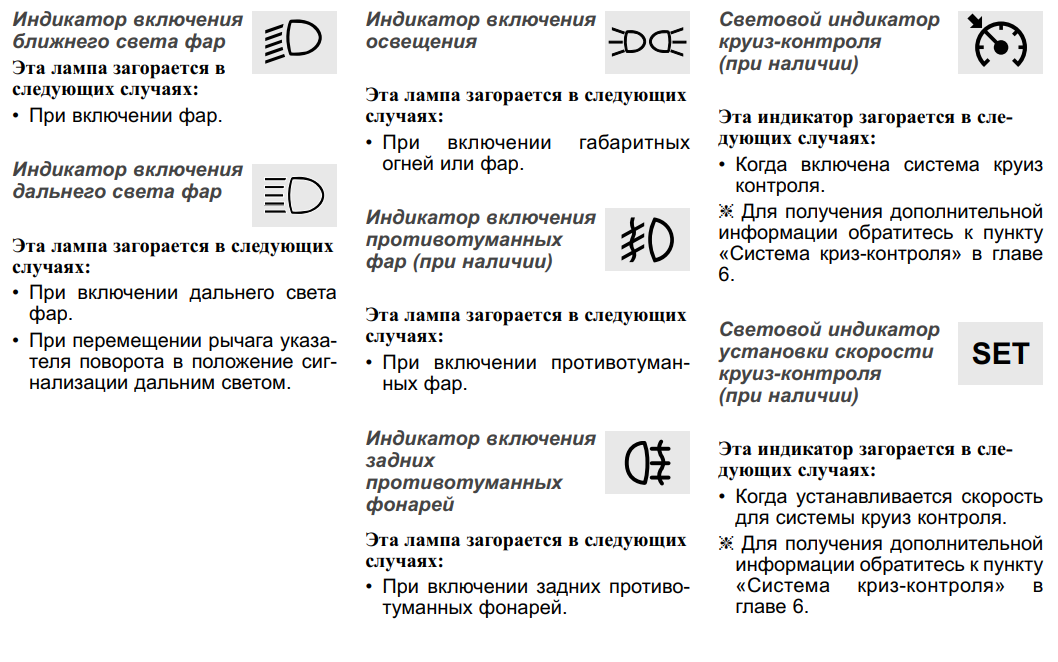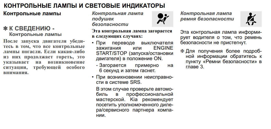 Контрольные лампы и световые индикаторы ПП Kia Rio 4