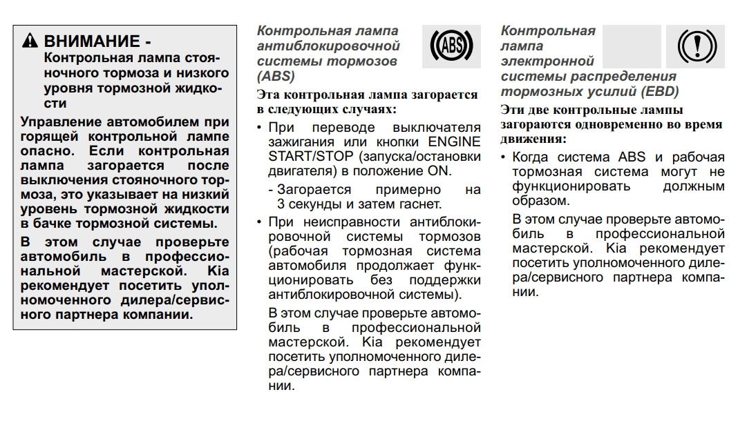 Сочетание этих индикаторов указывает на неполадки в системе электронного распределения тормозных сил. |
