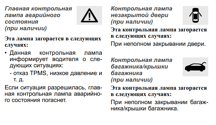 Расшифровка значков на приборной панели системы помощи при езде