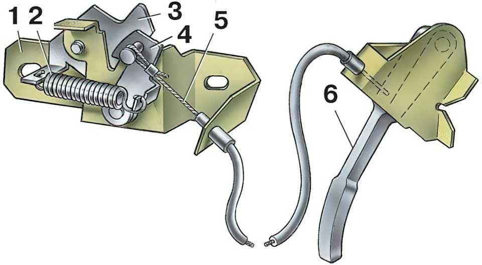 Растягивание тросика в процессе эксплуатации и его неспособность подтянуть защелку.