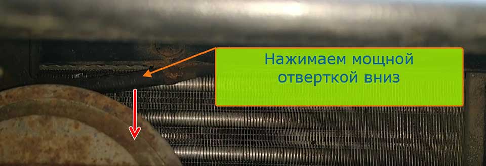 - Жмите на трос отверткой вниз до щелчка.