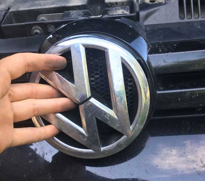 - Для Фольксваген Пассат. Используйте металлическую петлю. Предварительно демонтируйте эмблему путем откручивания по часовой стрелке с последующим снятием заглушки. Далее откройте замок с применением петли и зеркала.