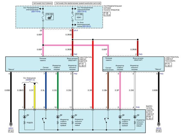 Схема подключения системы обогрева сидений автомобиля Киа Рио (с 2011 г)