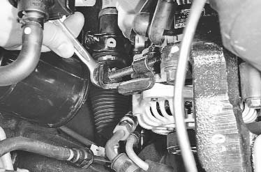 Для увеличения натяжения ремня перемещайте генератор от блока цилиндров двигателя, для уменьшения – к блоку.