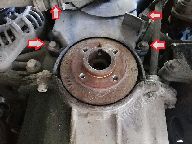 Откручиваем болт коленвала и четыре болта крепящие шкив.