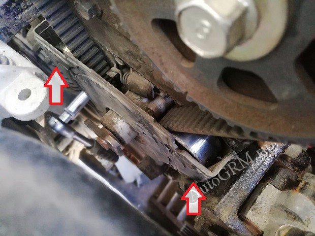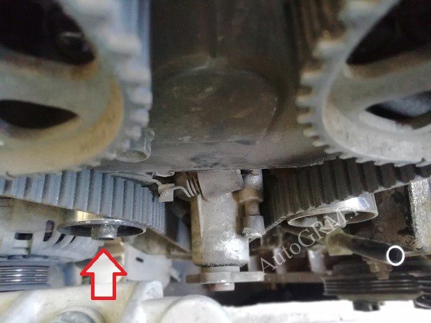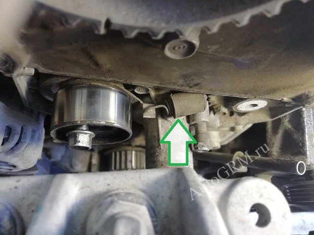 Обратите внимание что ремень ГРМ натягивается при помощи пружинки.