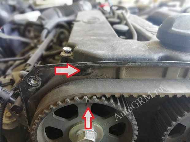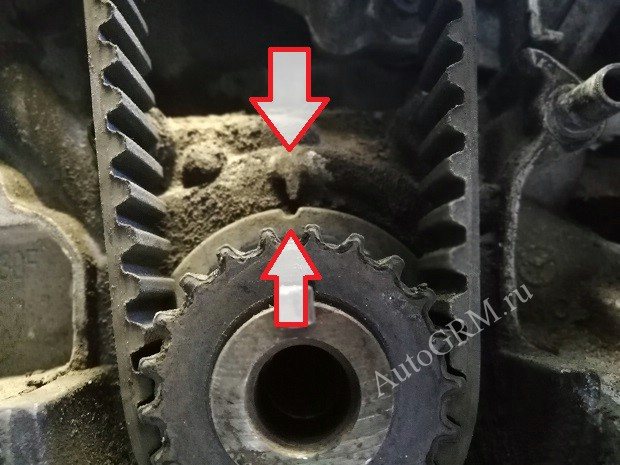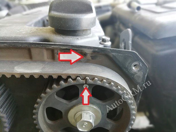 При установке ремней метки распредвалов должны стоять на одном уровне