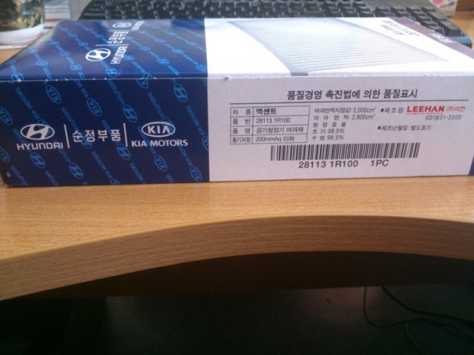 Это оригинальный фильтр, который устанавливают в сервисе официальных дилеров КИА. Производится он компанией Mobis, которая так же выпускает запчасти для Hyndai Solaris.
