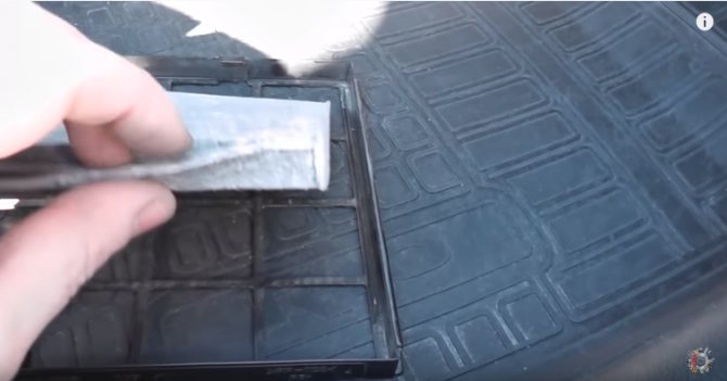 Вставляем новый фильтрующий элемент - Перед тем, как вставить новый элемент, коробку внутри следует протереть влажной тряпкой, очистив от накопившейся грязи и пыли. Дайте ей просохнуть. При установке нового изделия следует проследить, чтобы уплотнительные резинки не загибались и правильно легли в паз.