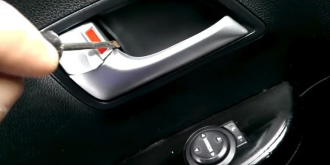Если данный метод, по тем или иным причинам, не сработал, можно прибегнуть к менее эстетичному, но, не менее эффективному способу. Для этого понадобится обычная тонкая отвёртка. Предварительно поместив инструмент в щель между накладкой и кнопкой блокировки двери, «рычаговым» движением постараться снять левый угол, после чего удалить её полностью.