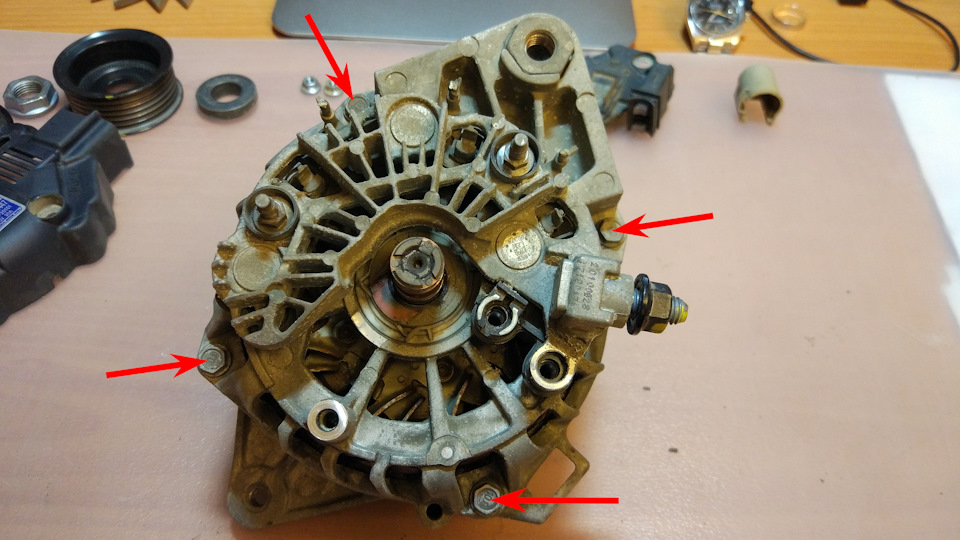 Откручиваем 4 стяжных болта крышек генератора.