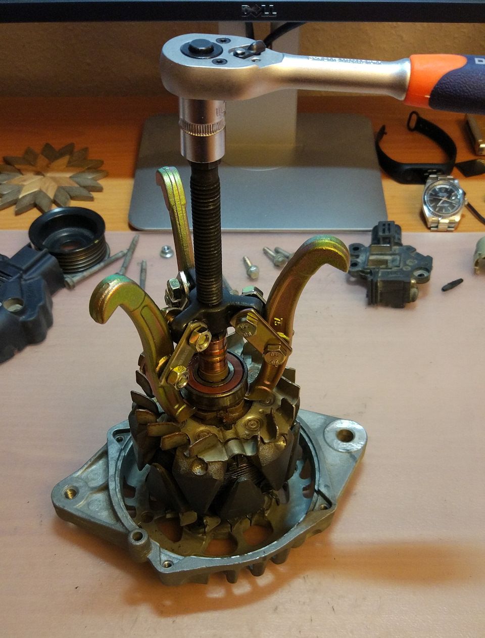 Теперь, если судить по умной книге, нужно снять переднюю крышку, но все попытки это сделать привели к тому, что вышел задний подшипник из своего посадочного места.