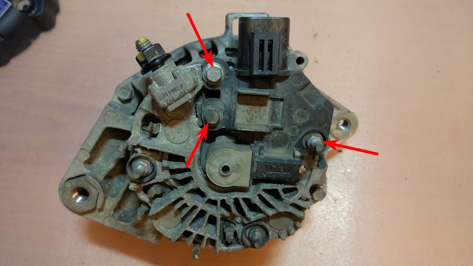 Отпаяйте три вывода обмотки статора от выпрямительного блока и снимите выпрямительный блок.
