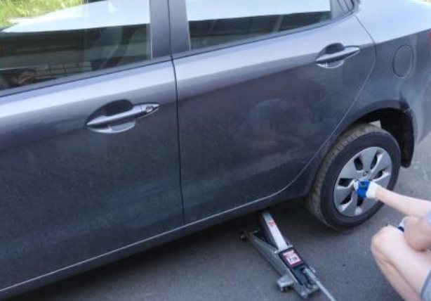 - Ослабить гайки колеса, но полностью не снимать.