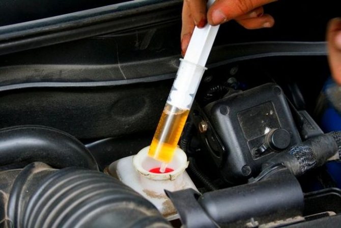 - Откачать лишнюю тормозную жидкость из бачка.