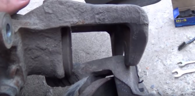 Очищаем суппорт от грязи.