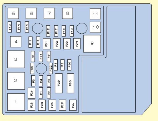 Нумерация (условная) предохранителей и реле в Киа Сид
