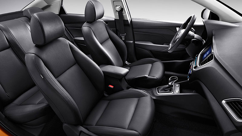 Solaris 2018 года с 5 пассажирами хорошо спланирован и, как и его внешний вид, выглядит лучше, чем предполагает его цена. Только когда сядете и почувствуете материал, вы поймёте, что это по-прежнему ориентированный на ценность автомобиль. Здесь много твёрдого пластика. Помимо гаджетов, стоит выделить центральный сенсорный экран, который управляет функциями аудио и телефона, а также легкодоступные циферблаты для климат-контроля. Мы предлагаем пропустить базовую модель SE по нескольким причинам, в том числе из-за того, что рулевое колесо имеет только наклонный механизм без телескопического, как в вариантах SEL и Limited.
