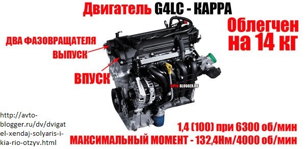 Эксплуатационные характеристики двигателей G4FA и G4FC достаточно близки друг другу, если смотреть на них после обзора VAG-овского многообразия силовых агрегатов. Мощность двигателя 1.4 составляет всего 107 лошадиных сил, а значит, для динамичной езды такая версия не подойдёт.