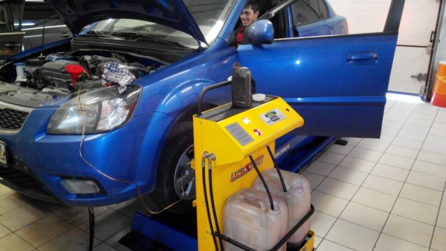 Так проходит смена жидкости в АКПП Рио в специализированном сервисе.