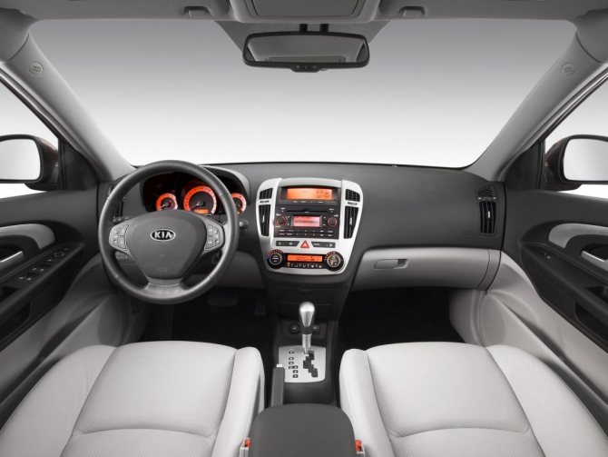 В салоне Киа Сид 2009 тоже царит гармоничная сдержанность. Добротный пластик мягок. Передние кресла хорошо спрофилированы. Диапазон регулировок водительского сиденья достаточен для людей любой комплекции. Мультифункциональный руль имеет удобный хват. Все органы управления размещены на приборной панели логично, в интуитивно понятных местах.
