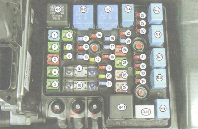 | R1 | — | C/FAN2 | Реле электровентилятора системы охлаждения (малая скорость вращения) |