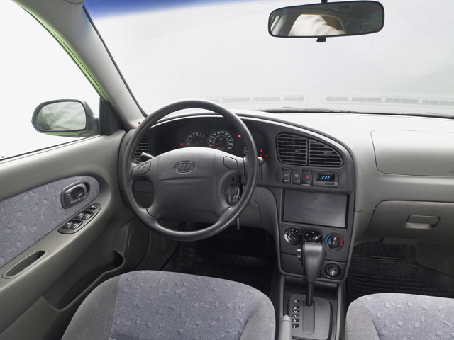Салон автомобиля KIA Spectra выполнен в архаичном стиле