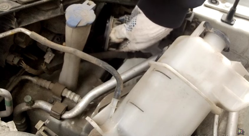 С водительской стороны проблем с заменой ламп не возникнет. А вот с пассажирской для удобства замены желательно открутить расширительный бачок, однако можно заменить лампу и без снятия.