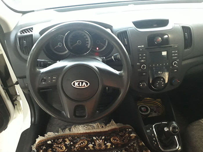 Салон Киа Церато 2 по большей части не способен ничем удивить. Пластик, с помощью которого исполнены многие аспекты интерьера, довольно грубый, при этом не является сильно шершавым. Его достаточно легко поцарапать. Лицевая сторона панели спереди обшита весьма мягким кожезаменителем. К сожаленью, у «козырька» отсутствуют какие-либо приборы. Его пустой вид сильно бросается в глаза. Очевидно, если бы корейцы поступили бы с ним по аналогии с лицевой стороной, все в совокупности смотрелось бы гораздо лучше.