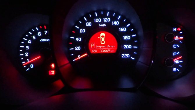 Приборная панель Киа Рио, значки и их значение