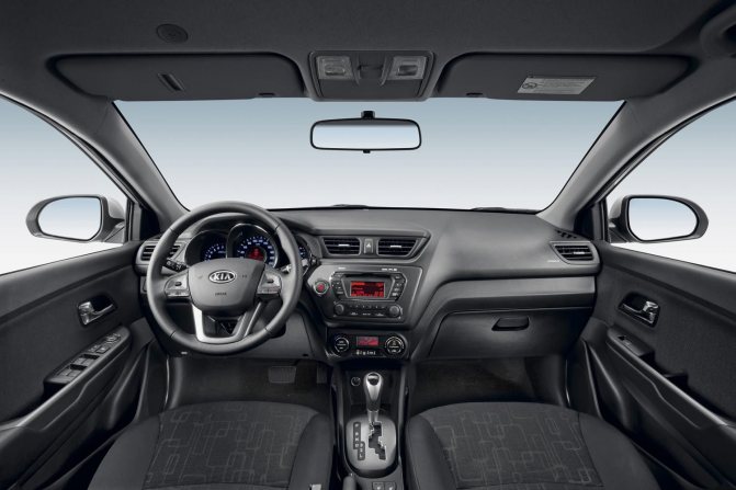 Щиток «Киа Рио» выполнен грамотно, все датчики расположены так, чтобы водителю было удобно контролировать системы автомобиля и не отвлекаться от дорожной ситуации.