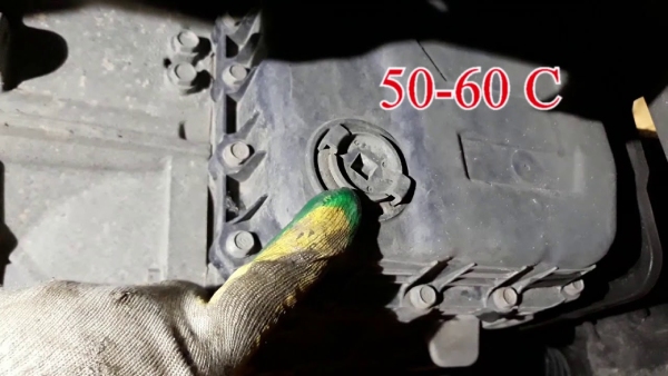 - Необходимо дождаться пока температура ATF достигнет диапазона в 50-60 градусов. Это можно проверить сканером или на ощупь. Во втором случае понадобится потрогать патрубки с подачей и обраткой на коробку передач. Они должны немного обжигать ладонь.