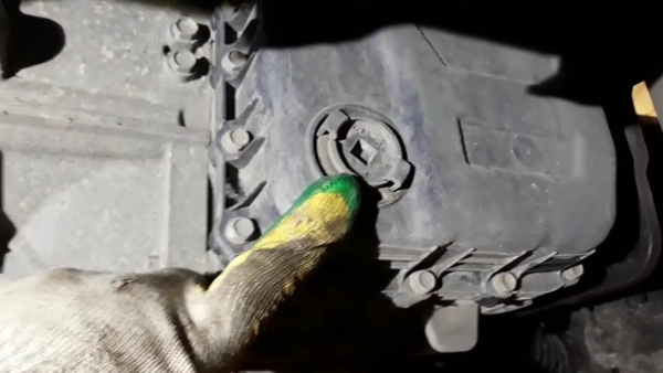 - Откручивают и снимают поддон, сливая еще некоторую часть старого масла.