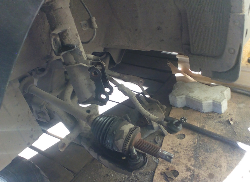 Диагностика проводится снизу на смотровой яме или эстакаде, колеса должны быть вывешены.