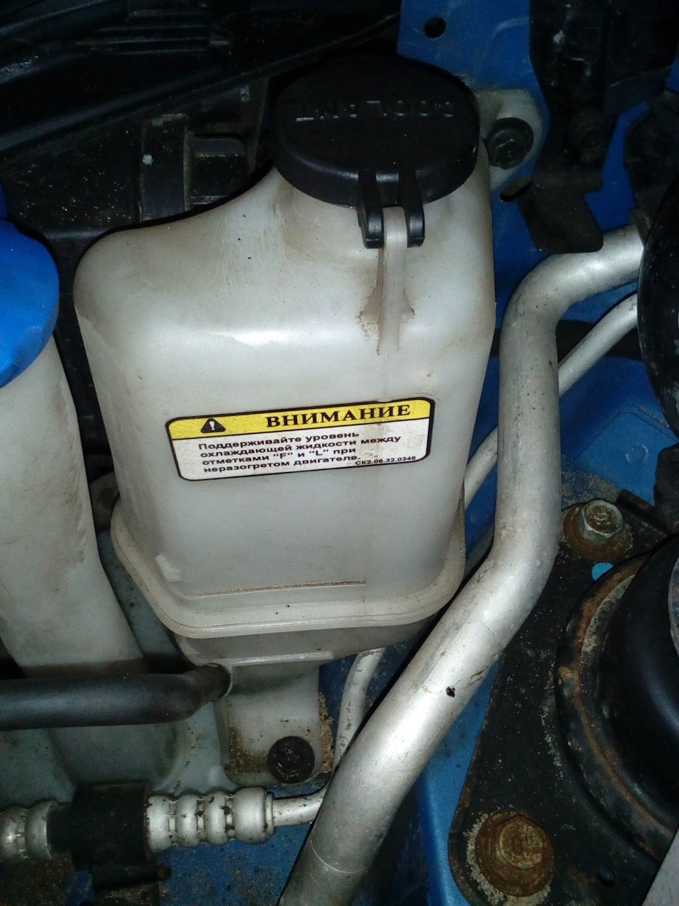 Сколы, грязь и ржавчина в расширительном бачке говорят о проблемах с системой охлаждения двигателя. Эту жидкость нужно срочно менять.