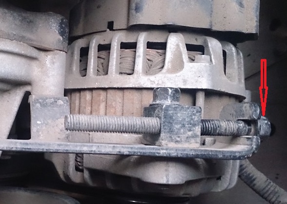 Раскрутить анкер генератора, вытащить механизм натяжения с гайкой