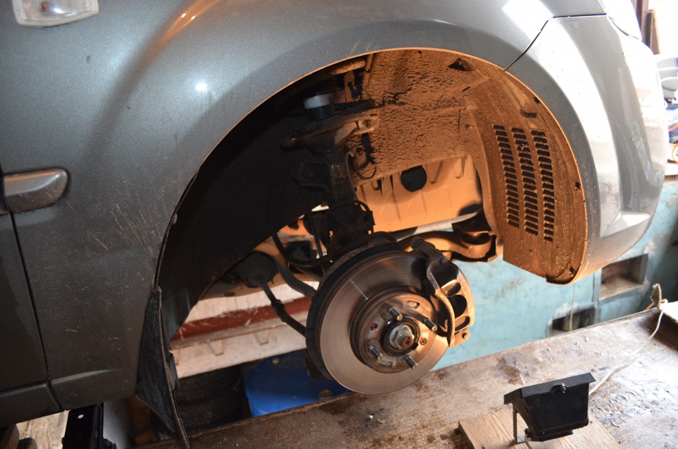 Вся операция для Kia Rio выполняется на яме либо с помощью подъемного оборудования.