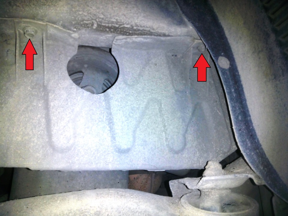 - Снизу мотора, сбоку от «штанов» глушителя, отвинтить болты, вытащить металлическую защиту сцепления. Поддон ДВС не отвинчивать!