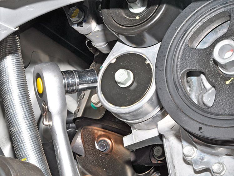 - Проверните коленчатый вал на три полных оборота, чтобы ремень привода вспомогательных агрегатов занял правильное положение на шкивах