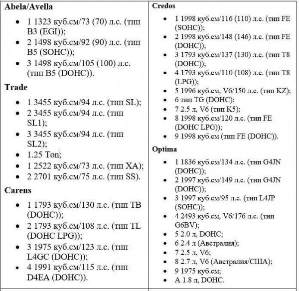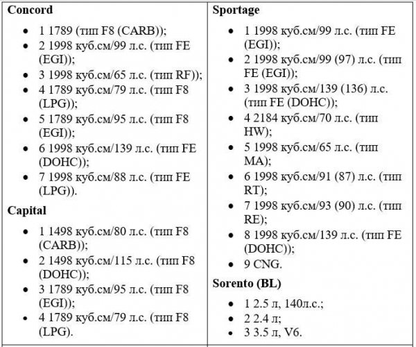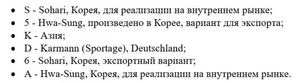 Здесь обозначения следующие (во всех случаях производитель — Киа Моторс):