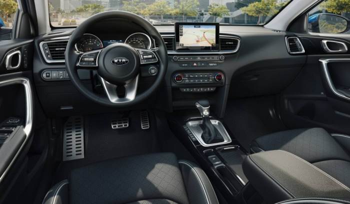 Под вентилируемыми воздуховодами установлен мультимедийный экран, ниже которого располагается блок управления климат-контролем. Стандартные комплектации оснащены всего лишь простенькими магнитолами и кондиционером. В зависимости от модификации Киа Сид 2, в авто имеются базовые циферблаты с монохромным дисплеем или панель Супервижн с HD экраном, расположенным в центральной части. Многофункциональным, удобным, приятным на ощупь рулевым колесом оборудованы все версии автомобиля.
