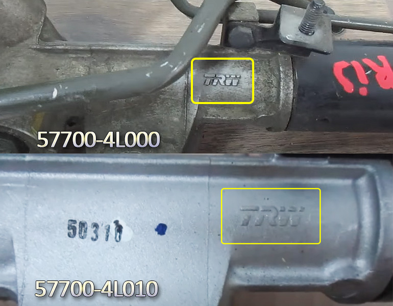 Хронология событий следующая : с начала производства и по 18.01.2013г ставили рейку под артикулом 57700-4L000, после артикул сменили на 57700-4L010. Замена номера была связана с браком рулевого распределителя. Увы, с переходом на новый проблема осталась.