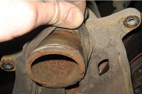 Чтобы исправить данную ситуацию и избавиться от раздражающих звуков, достаточно снять суппорт и извлечь поршень. Затем визуально проверяют его состояние, а вместе с поршнем осматривают поверхность цилиндра. Если в ходе осмотра обнаружены следы коррозии, цилиндр необходимо зачистить, а поршень рекомендуется заменить.