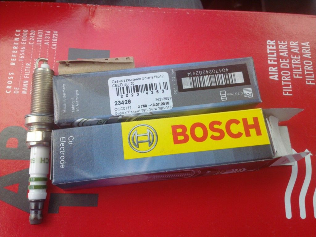 При выборе свечи для КИО Рио 3, многие отдают предпочтение модели YR7MPP33 из серии BOSCH Double Platinum. Благодаря покрытию электродов драгоценным металлом представленная деталь отличается повышенной устойчивостью к коррозии и износу. Дополнительным преимуществом данной свечи зажигания являются низкие показатели тепло- и электропроводности. Сверхтонкий центральный электрод (0.6 мм) гарантирует эффективное искрообразование при любых условиях окружающей среды и температурных режимах. Стабильную работу бортовой электроники обеспечивает эффективная защита для подавления помех, которой выгодно отличаются Double Platinum. Установка этой свечи в KIA Rio дополнительно гарантирует увеличение срока эксплуатации дорогостоящего катализатора.