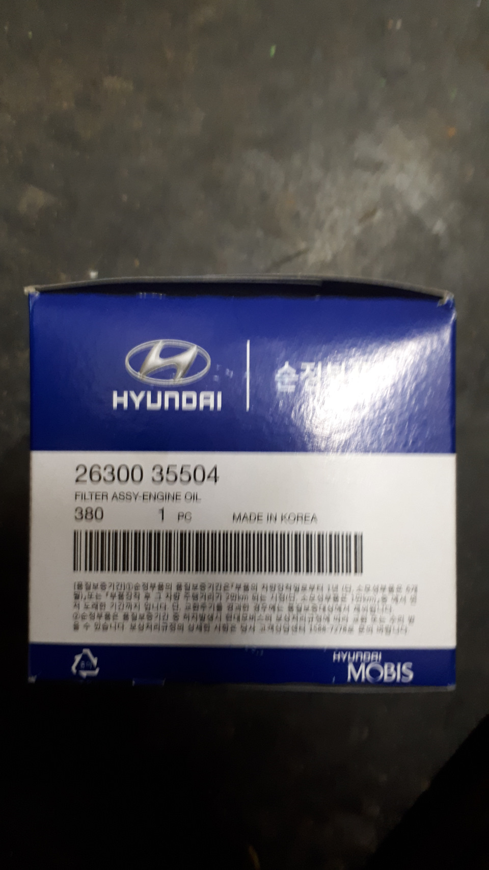 Что касается фильтра, то рекомендуется ставить оригинальный компонент. Найти оригинальный масляный фильтр KIA HYUNDAI можно по артикулу 2630035504.