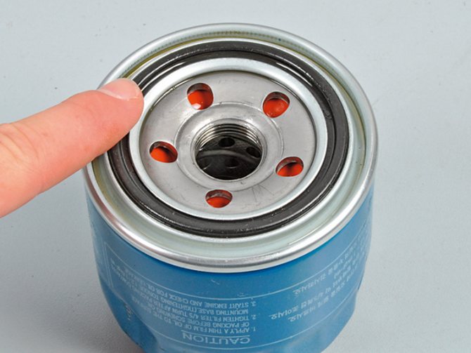 Наносим моторное масло на уплотнительное кольцо фильтра.
