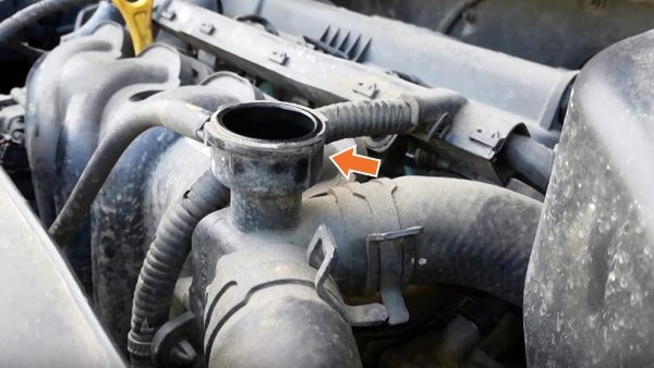 - Снятие патрубка и слив остатков отработанного тосола из силовой установки.